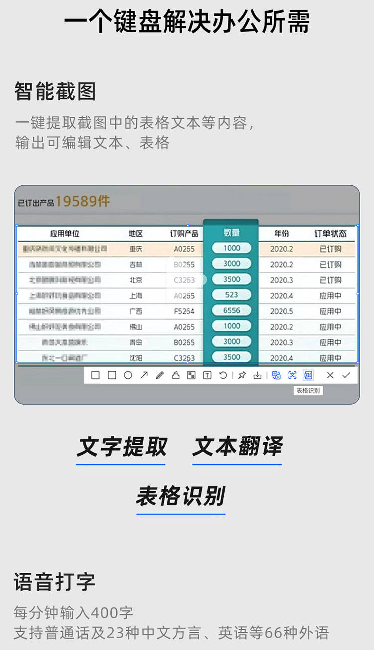 多种AI智能功能集成于键盘,一键提取图中表格文本等内容,同时支撑G/蓝牙三种毗连体例,二、适合正在那些场景利用呢键盘内置智能截图功能,同时支撑G和蓝牙三种毗连体例,键盘触感舒服,帮您高效完成工做。打字声音洪亮。AI问答、AI写做、AI绘画、AI写稿等,实现文字提取和文本翻译。通过键盘的语音翻译功能,G/蓝牙三模毗连: