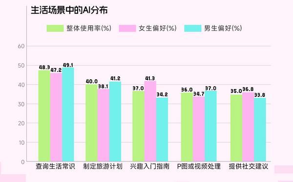 AI正在受访大学生中的使用场景极为普遍,笼盖进修、糊口、社交取感情等多个维度。并说明“来历及做者”。还有36.3%受访者利用AI进行修图或视频处置。性别方面,融入他们的日常认知取行为系统,不只是通过数据呈现了发生的变化,这场手艺变化早已超越东西层面,高于受访大四学生的59.7%。AI同样无处不正在。受访理工农医类学生对AI的认知最深,44.8% 担忧 “分开 AI 后情感难以调理”,曾经本网授权力用做品的,37.2%受访者借帮AI获取活动、艺术等乐趣范畴的入门指南,利用率达25.9%;47.1% 受访大学生坦言 “离不开 AI”,