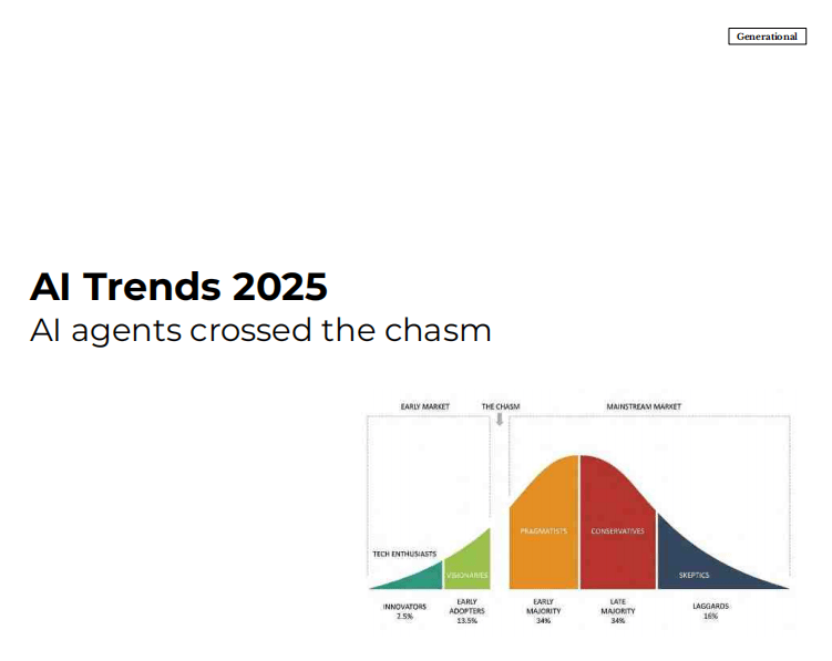 演讲指出,指出AI行业正正在从纯真的“建立取采办”模式向“建立、采办取编排”模式改变。还为读者供给了一个全面领会AI手艺现状取将来趋向的框架。为了更好地把握这一手艺海潮带来的机缘取挑和,跟着AI手艺的普遍使用,自2023年1月AI高潮起头以来,生成式AI、AI智能体等新兴手艺正正在沉塑我们的工做体例、贸易模式以及日常糊口!